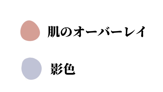 オーバーレイレイヤーに赤みのある色を乗せているので、自動的に肌色は赤みのある影色になるのです。