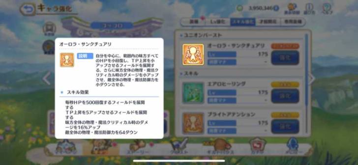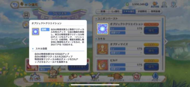 スキル説明が良く分からない方に説明すると、このUBを発動すると味方全員のクリティカル時のダメージ上昇。もう1度TPが全開になるとイニシャライズという物理特大ダメージを出す2段技です。使用すれば体感出来ますが破格の強さを持っています。バフのオプティマイズやデバフのビルドと組み合わせることで自分自身と味方全員に恩恵を与えます。